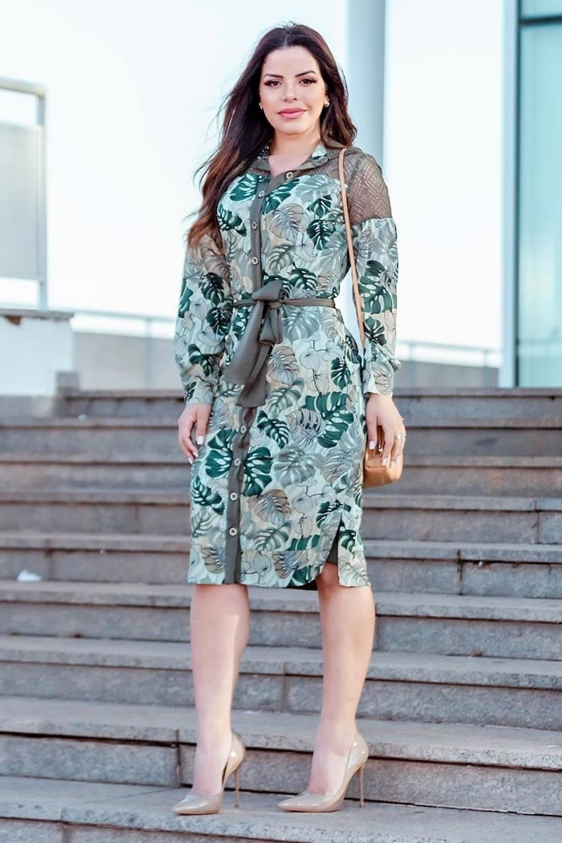 Foliage Chiffon Shirt-Dress